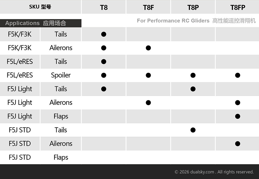 • Designed for performance RC Gliders(F5J light, eRES, F5K & F3K)