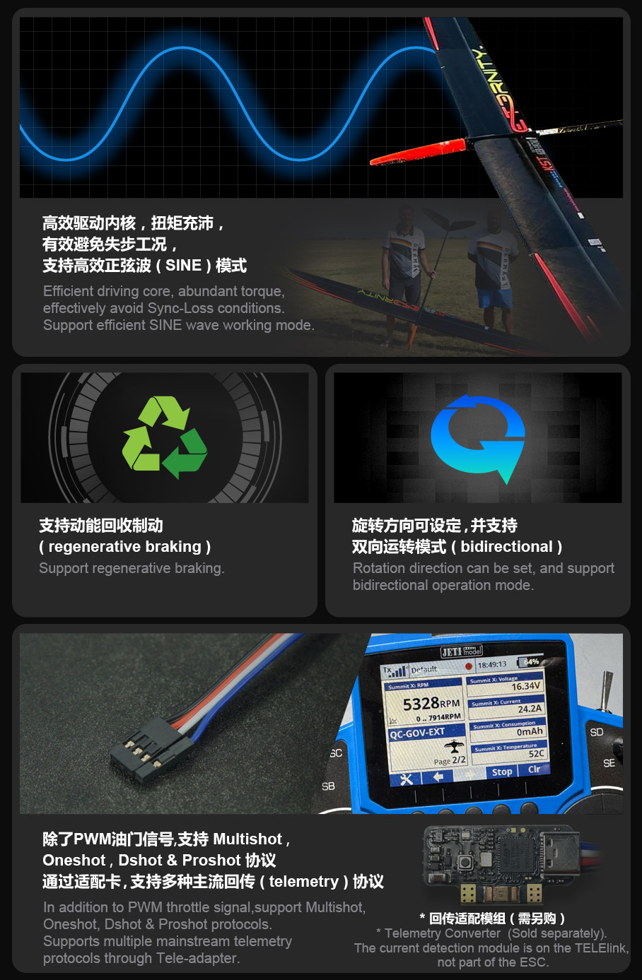 6. Implement multiple protection such as throttle, voltage, current, temperature and low RPM