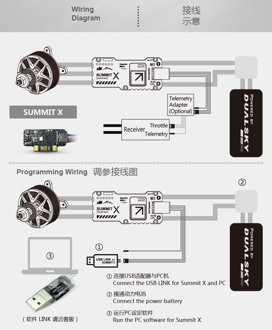 SUMMIT 60 SLIM U8 - Slim design, 60 amps S.O.T.(Short Operating Time), 2S-6S Lipo - UBEC 8V, 5A Cont./10A Peak - 32-bit ARM core, supports EA, GA motors - Fully programming |
